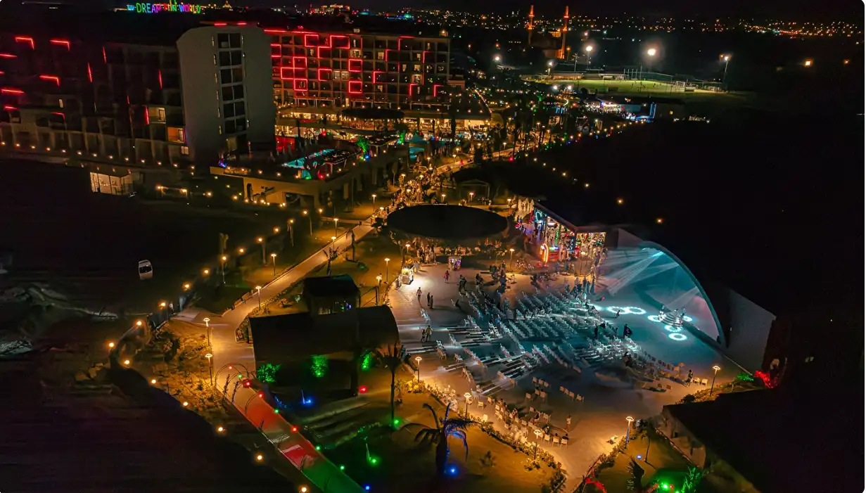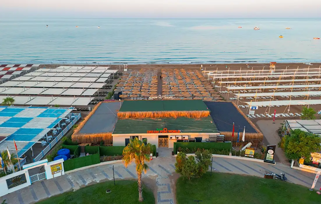 Tesiste özel ince kumlu plajda gün boyu vakit geçirmeniz için plaj bar ve snack restoran tüm gün hizmetinizdedir. Çocuk Dünyası & Kaydıraklı Havuzu ve büyüklere olduğu kadar çocuklara da hitap eden büyük bir kaydırak kompleksi içermektedir. Dream Fun World tesisi çocuklu aileler için vazgeçilmez bir rüyaya dönüşürken, +18 yaş havuzu ile de yetişkinler için çocuksuz havuz keyfi sunmaktadır.