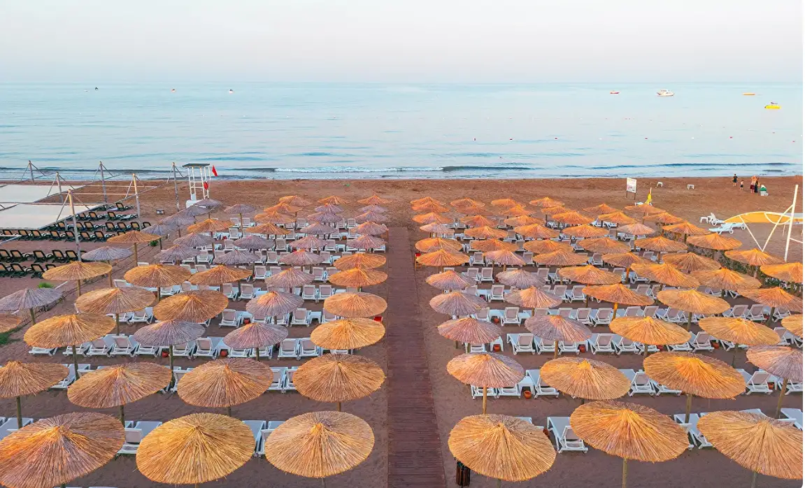 Plajda yiyecek içecek hizmeti ,şezlong şemsiye ve plaj havlusu ücretsizdir.