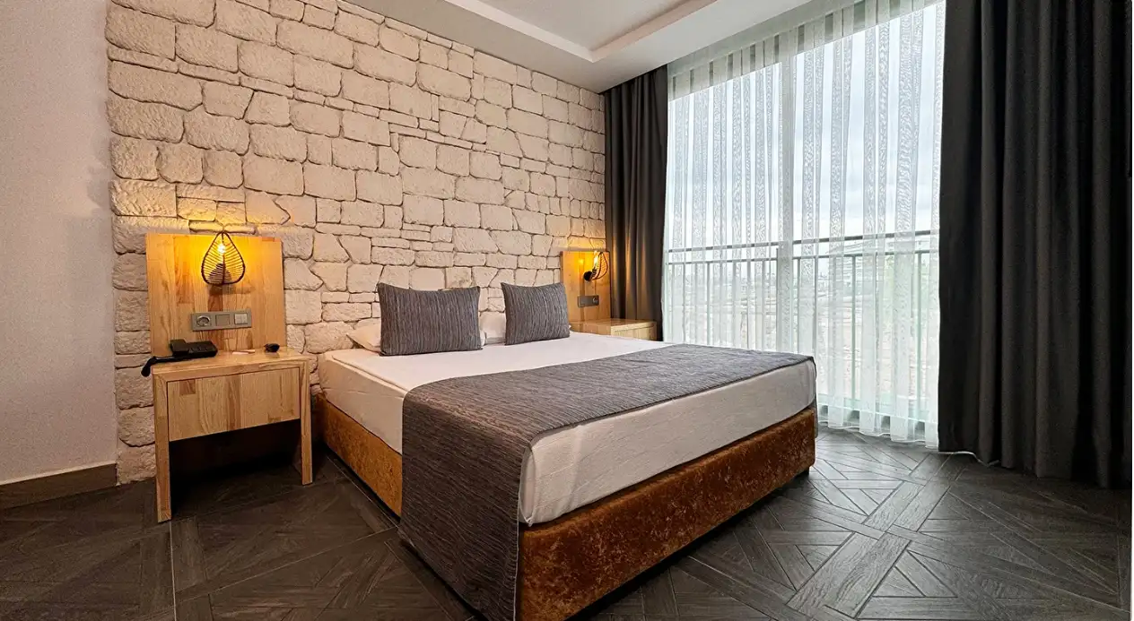 Standart Geniş Oda : 25 m2 genişliğindedir. 20 adet, standart geniş odalar biraz daha büyük olup, tüm standart oda olanakları mevcuttur.