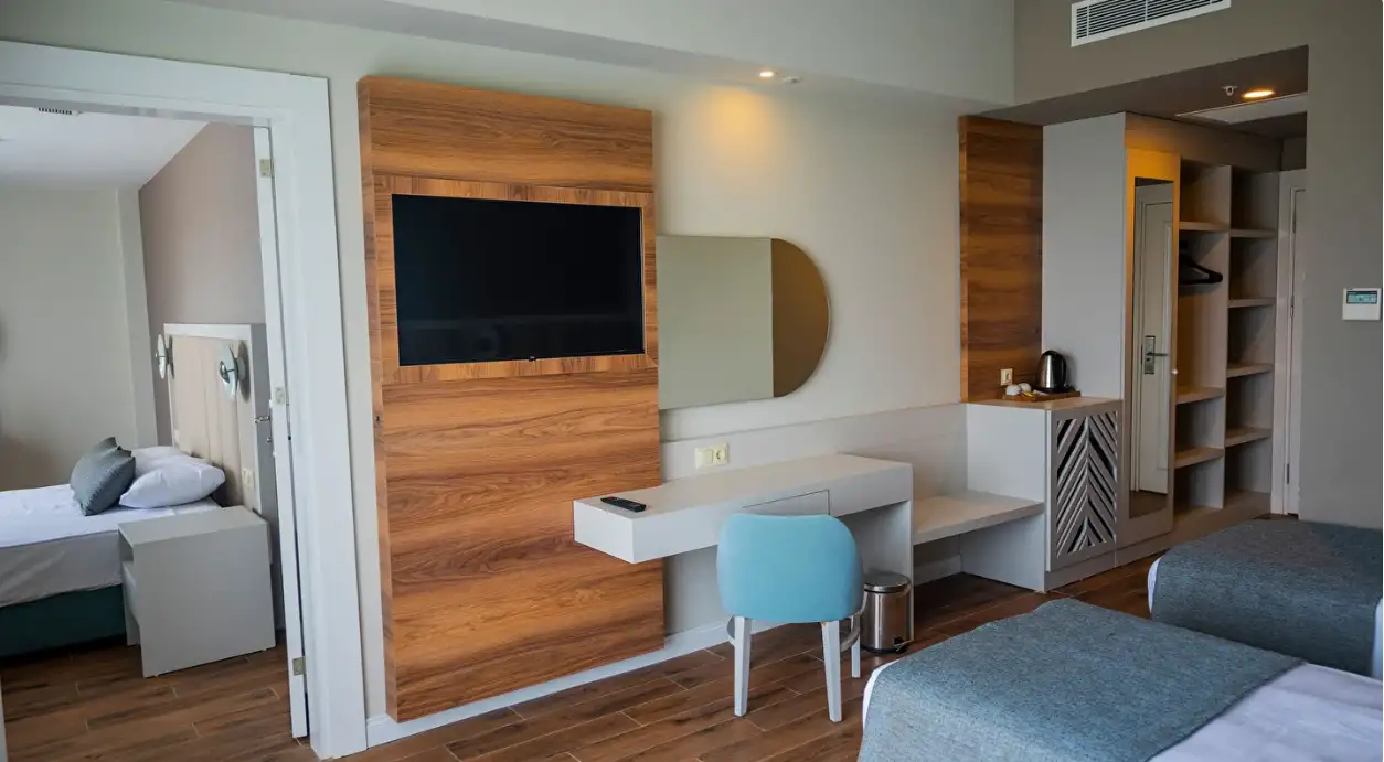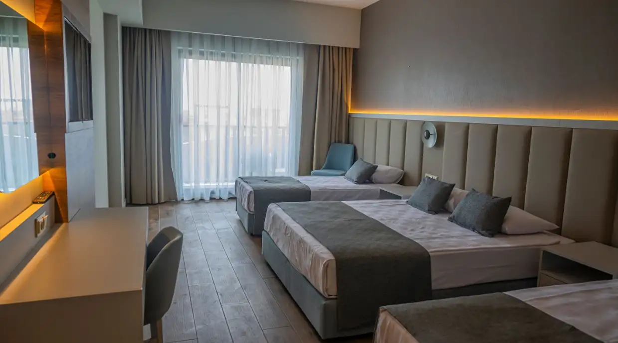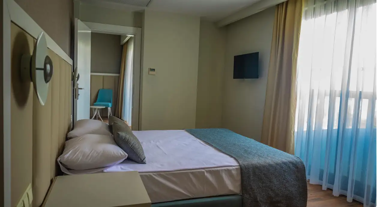 Aile Odası : Max. 4 kişi Yaklaşık 38 m² genişliğinde Standart odalarda bulunan tüm özellikler ile beraber ayrıca ara kapı ile ayrılan iki yatak odası da bulunmaktadır. Bu odalarımızda en fazla 4 yetişkin konaklayabilmektedir.