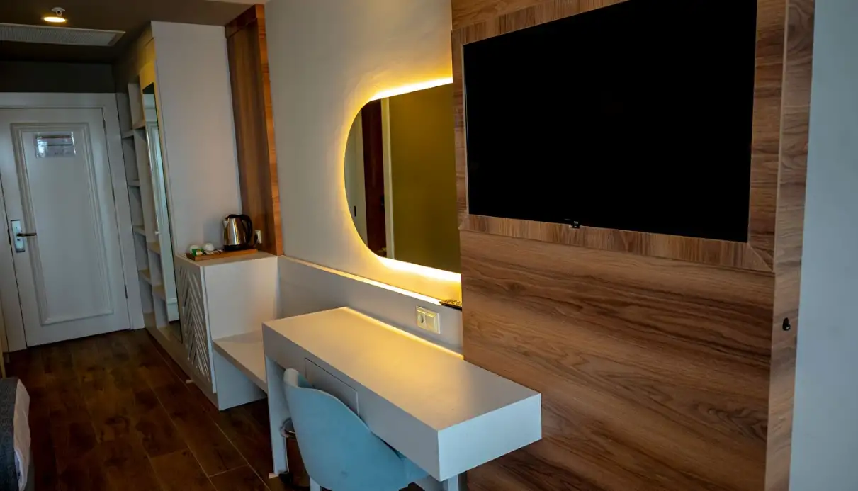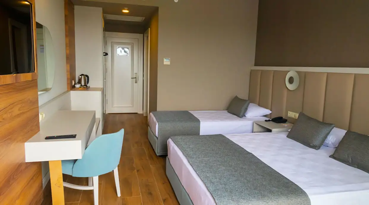 Tüm odalarımızın zeminleri laminat veya seramik döşemelidir. Ayrıca tüm odalarda duşa kabin mevcuttur. Elektronik kapı sistemi, merkezi havalandırma & ısıtma, LCD TV ve direk Telefon, müzik kanalı, minibar, su ısıtıcısı, kahve, çay, şeker, kasa(kiralık), kablosuz internet, banyolarda telefon, saç kurutma makinesi, 220 volt elektrik bulunmaktadır.