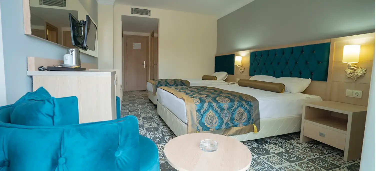 Aile Odası: 38 m² genişliğindedir. Max. 4 kişilik konaklamaya uygundur. Standart odalarda bulunan tüm özellikler ile beraber ayrıca arakapı ile ayrılan iki yatak odası da bulunmaktadır. Bu odalarda en fazla 4 yetişkin konaklayabilmektedir.